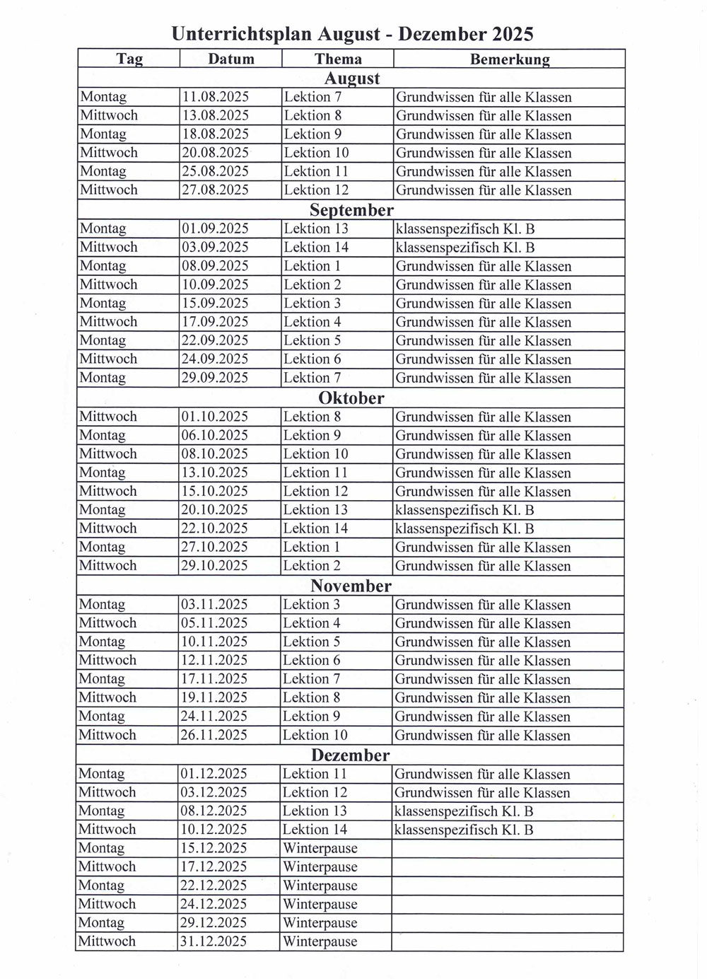 Dank flexibler Unterrichtszeiten kannst du die Theorie optimal in deinen Alltag integrieren. Egal, ob du ein schneller Lerner bist oder dir mehr Zeit nehmen möchtest – wir passen uns deinen Bedürfnissen an.
